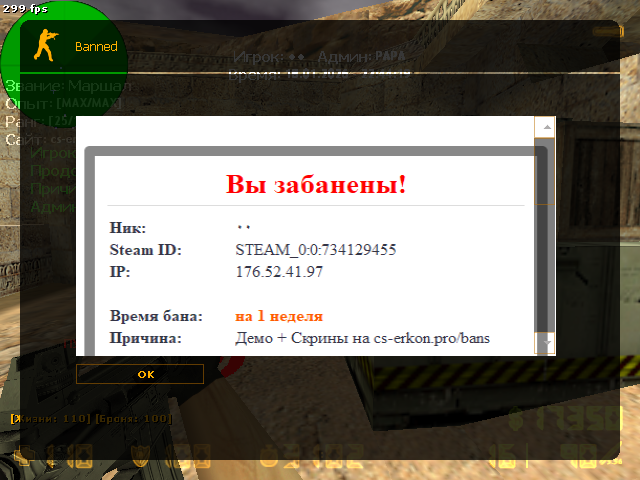 Причина: Демо Скрины на cs-erkon.pro/bans
